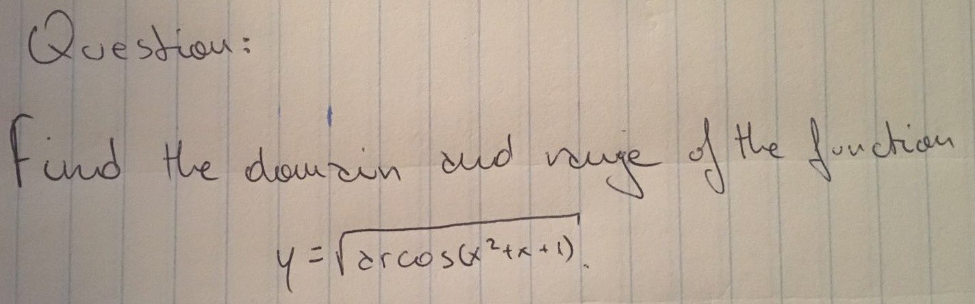 Therefore, the range of the function is \small [0, \sqrt{arccos\frac{3}{4}}].